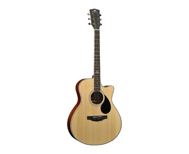 KEPMA A1C-NM Matt — акустическая гитара начального уровня из серии A1C, созданная для музыкантов, которым нужен универсальный инструмент с качественным звучанием. Корпус формы Grand Auditorium (40") выполнен из тщательно отобранной ламинированной ели, которая придаёт звуку яркость и хорошую резонансность с акцентом на верхние частоты. Ламинированные нижняя дека и обечайка из агатиса добавляют теплоту и делают инструмент более устойчивым к перепадам влажности — такой корпус надёжен в путешествиях и на открытом воздухе. Традиционная X-образная распорка усиливает резонанс корпуса, помогая добиться сбалансированного тона. Гриф из махагони с привычным округлым профилем и накладкой из палисандра — комфортный и удобный в игре. Мензура 648 мм и 20 ладов создают точную интонацию и комфорт для исполнения аккордовых и сольных партий. Литые колки GOTOH-style с никелевым покрытием и фосфорно-бронзовые струны KEPMA 011-052 сохраняют настройку и придают звуку яркость. Порожек из Bone Plastic и бридж из палисандра улучшают передачу вибраций, увеличивая сустейн. Технология обработки древесины Kepma, включающая многоступенчатую сушку, снижает риск деформаций и повышает стабильность инструмента. Матовая натуральная отделка подчёркивает текстуру древесины, придавая гитаре элегантный и современный вид, а также защищает поверхность от мелких царапин. Розетка и окантовка из ABS добавляют стилю практичности. Точная обработка ладов с помощью технологии Plek® исключает призвуки и делает игру максимально комфортной. ТОО "Самат шоу техник" является официальным дистрибьютором бренда Kepma.