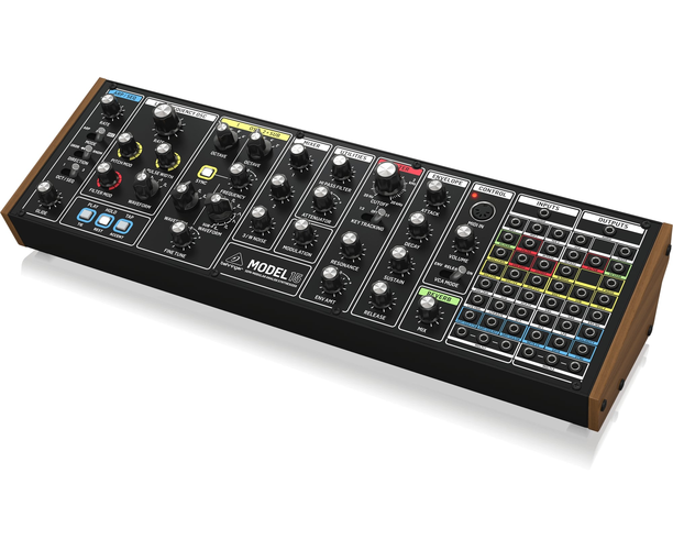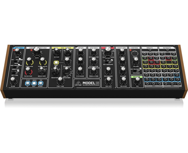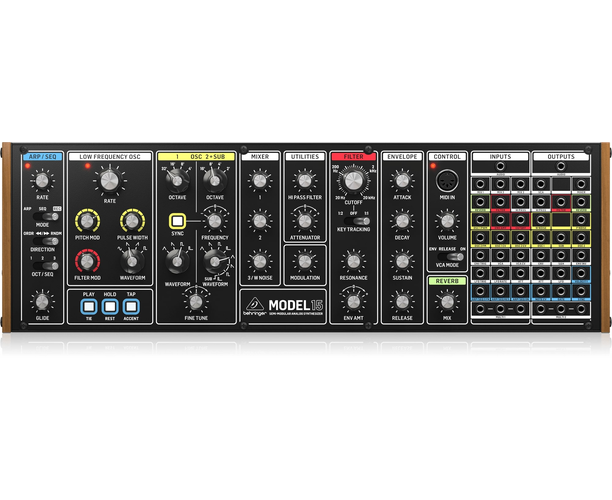 BEHRINGER Model 15 — полу‑модульный аналоговый синтезатор, вдохновлённый легендарным Moog Grandmother. Он готов к игре сразу после включения, но также позволяет создавать собственные соединения между модулями и экспериментировать со звуком.