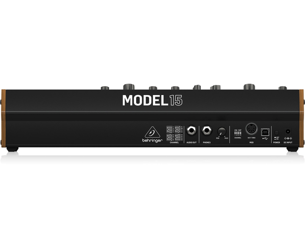 Model 15 оснащён двумя синхронизируемыми осцилляторами с четырьмя формами волны и саб-осциллятором, резонансным фильтром Ladder 24 дБ/окт, аналоговым LFO и ADSR‑огибающей, что даёт возможность экспериментировать с новыми звуками и получать необычные эффекты прямо с первого включения.