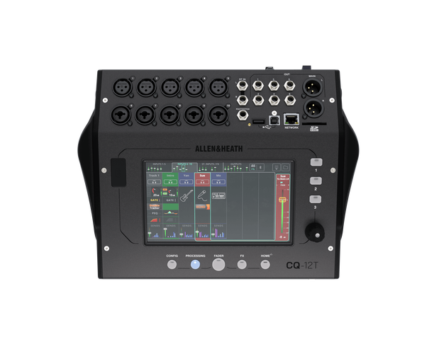 Allen & Heath CQ-12T — это компактная и многофункциональная консоль, предназначенная для небольших сцен, репетиций, подкастов и мобильных приложений. С 12 входами и 8 выходами, CQ-12T предлагает высококачественную обработку сигнала с частотой дискретизации 96 кГц и глубиной 96 бит, обеспечивая студийное качество звука. Микшер оснащён 7-дюймовым сенсорным экраном и поворотным регулятором для удобного управления. Встроенные эффекты включают реверберацию, задержку и модуляцию, с возможностью автоматической настройки через FX Assist. Функция Gain Assistant автоматически регулирует уровень усиления для оптимальной работы предусилителей. CQ-12T также поддерживает Bluetooth для воспроизведения стереофайлов и имеет USB-B интерфейс для многоканальной записи и воспроизведения.