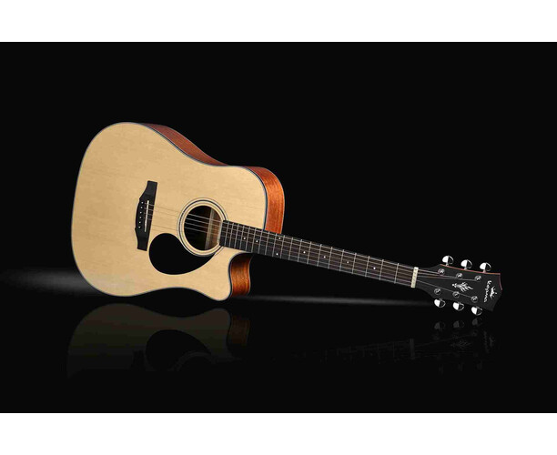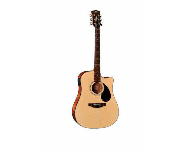 KEPMA EDCE-K1-NM Matt – электроакустическая гитара с вырезом (cutaway) в корпусе дредноут 41", созданная для музыкантов, которым нужен универсальный инструмент с качественным звучанием по доступной цене. Верхняя дека выполнена из ламинированной ситкинской ели (Layered Sitka/Engelman Spruce), обечайки и нижняя дека — из ламинированного махагони (Layered Mahogany), что придаёт яркость верхним частотам и тёплую глубину низам. Гриф изготовлен из Nato/Okoume с гладкой сатиновой отделкой, накладка и бридж — Indonesian Rosewood/Walnut. Мензура 650 мм и 20 ладов обеспечивают точную интонацию и удобство игры. Хромированные литые колки и струны KEPMA 011-052 Phosphor Bronze поддерживают стабильную настройку. Электроника включает модуль KEPMA K1, позволяющий регулировать тон при подключении к усилителю. Матовая натуральная отделка подчеркивает текстуру древесины и защищает поверхность от мелких повреждений. KEPMA EDCE-K1-NM Matt – надёжная, универсальная гитара, подходящая для начинающих и опытных музыкантов, сочетающая качество звучания и практичность по доступной цене. ТОО "Самат шоу техник" является официальным дистрибьютором бренда Kepma.