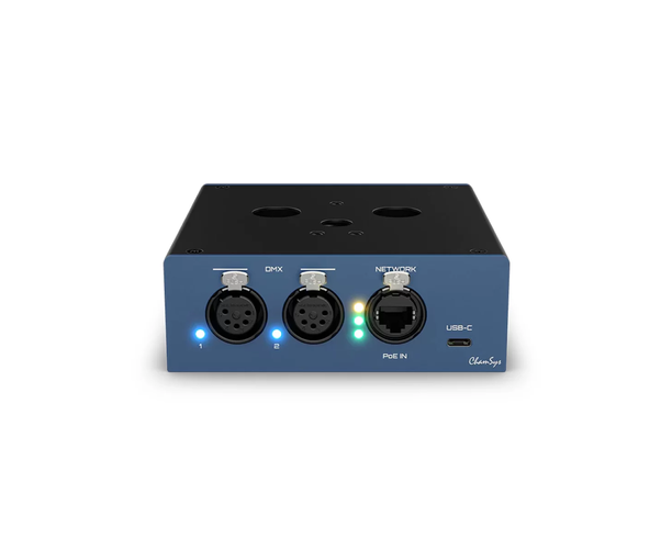 Питание интерфейса может быть организовано как по технологии PoE, так и через порт USB-C. Дополнительные функции, такие как резервирование DMX-сигнала и хранение пользовательских сцен, повышают надёжность системы и позволяют быстро восстанавливать работу в случае сбоев.