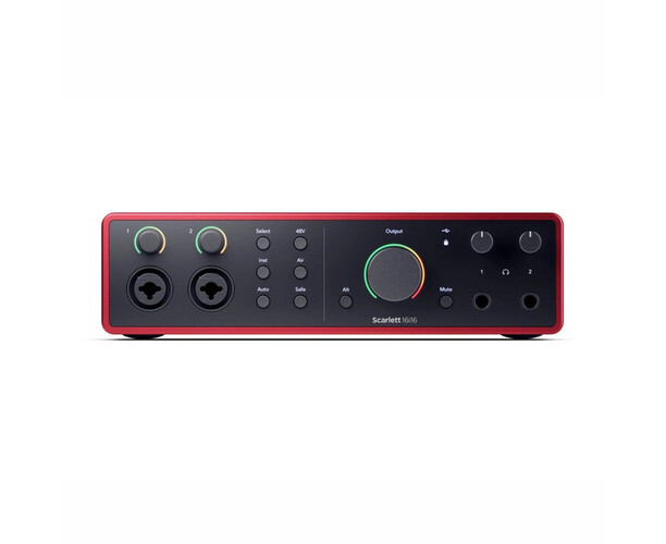 Focusrite Scarlett 16i16 4th Gen (MOSC0035EU) — это USB-C аудиоинтерфейс, предлагающий 16 входов и 16 выходов, включая два комбинированных XLR/TRS входа с фантомным питанием +48 В, два линейных входа TRS, четыре балансных линейных выхода TRS и два выхода для наушников. Он поддерживает разрешение 24 бита и частоту дискретизации до 192 кГц, обеспечивая профессиональное качество записи. Интерфейс оснащён функциями Auto Gain, Clip Safe, Air (с двумя режимами), Presence и Harmonic Drive, позволяющими улучшить звучание и предотвратить искажения. Также предусмотрена функция Loopback для записи аудио с приложений на компьютере, что полезно для подкастеров и стримеров.