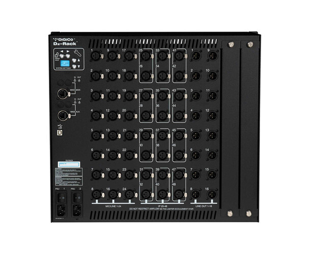 DiGiCo D2-Rack - Интерфейсный модуль предназначенный для подключения к цифровым микшерам DiGiCo серий SD и S. Он предоставляет 48 аналоговых микрофонных/линейных входов на XLR и 16 аналоговых выходов, с возможностью расширения до 32 выходов за счёт дополнительных плат (аналоговых или цифровых AES/EBU).