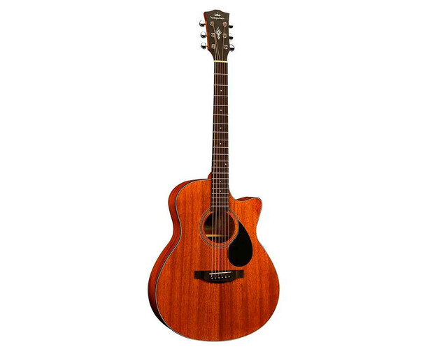 KEPMA EAC-WAM Matt - отличный выбор для первых шагов и дальнейшего роста. Эта гитара сочетает доступность и продуманные детали: удобный корпус Grand Auditorium с вырезом, сбалансированное звучание ели и махагони, а также аккуратную матовую отделку. Корпус собран из слоёной ситхинской ели (верхняя дека) и махагони (нижняя дека и обечайка). Ель даёт ясные и звонкие верхние частоты, а махагони добавляет теплоту и глубину звучания. Традиционная Х-образная система распорок (X-bracing) поддерживает резонанс корпуса и формирует сбалансированное звучание. Гриф с гладкой сатиновой отделкой и накладкой обеспечивает комфорт при игре и точность интонации. Мензура 648 мм и 20 ладов делают инструмент удобным для аккордов и сольных партий. Тщательная обработка ладов с применением технологии Plek® исключает призвуки и делает игру мягкой и предсказуемой. Хромированные колки и комплект струн KEPMA 011–052 из фосфорно-бронзового сплава обеспечивают стабильный строй и долговечность. Многоступенчатая обработка древесины на фабрике Kepma защищает инструмент от деформаций и продлевает срок службы. Матовая санберст-отделка подчёркивает текстуру дерева, а чёрный каплевидный пикгард из ABS придают инструменту аккуратный вид. KEPMA EAC-WAM Matt — универсальная гитара с ярким и тёплым звучанием, надёжная в повседневном использовании и удобная как для обучения, так и для сцены. ТОО "Самат шоу техник" является официальным дистрибьютором бренда Kepma.