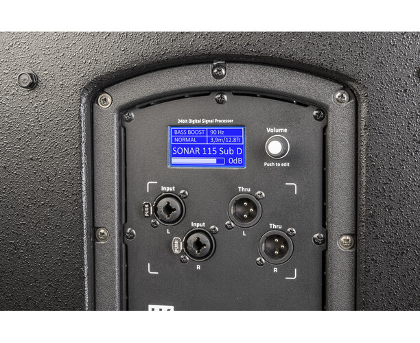 SONAR 115 Sub D управляется 24-битным DSP с ЖК-экраном с подсветкой, который можно использовать для удобной настройки частоты кроссовера, полярности и, при необходимости, задержки. Одной из особенно примечательных особенностей является простая в использовании и высокоэффективная функция Cardioid, которая до сих пор была доступна только в гораздо более дорогих сабвуферах. Благодаря двум предварительно настроенным предустановкам CARDIOID FRONT и CARDIOID REAR можно эффективно свести к минимуму проблемное излучение басов сзади.