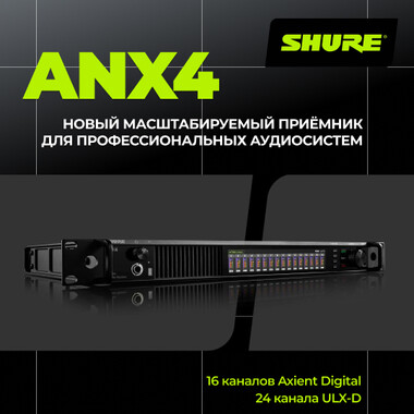 Современные концертные площадки, театры, телестудии и мероприятия всё чаще требуют всё больше беспроводных каналов и максимальной надёжности. Именно для таких задач компания Shure представила революционную новинку — Shure ANX4 , масштабируемый приёмник, который меняет подход к организации профессиональных беспроводных аудиосистем....