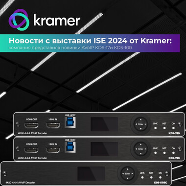 Новости с выставки ISE 2024 от Kramer! Компания представила новинки AVoIP KDS-17 и KDS-100 На прошлой неделе в рамках выставки Integrated Systems Europe (ISE) 2024, компания Kramer объявила о расширении своего портфеля AVoIP. Это расширение включает в себя внедрение двух инновационных продуктов - KDS-17 и KDS-100, предназначенных для...