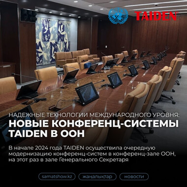 В начале 2024 года TAIDEN осуществила очередную модернизацию конференц-систем в конференц-зале ООН, на этот раз в зале Генерального Секретаря ООН. Преследуя политику экономии бумаги с целью бережного отношения к окружающей среде, ООН проводит безбумажные заседания благодаря замене старых конференц-систем на новые мультимедийные...