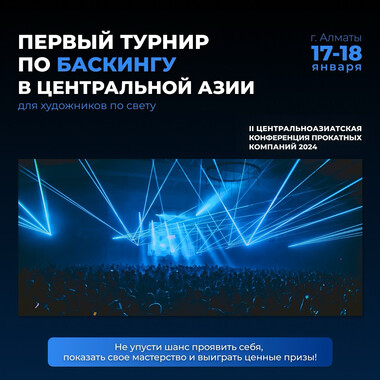 Дорогие партнёры! Компания "Самат шоу техник" с радостью приглашает вас принять участие в Конференции прокатных и ивент компаний, которая пройдет с 17 по 18 января 2024 года в г. Алматы, пр. Абая 117,...