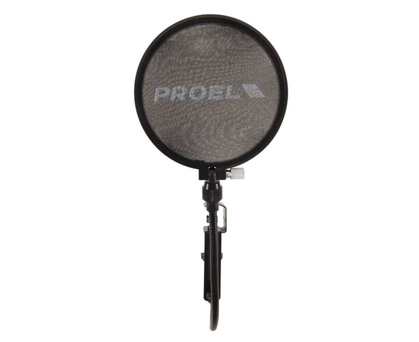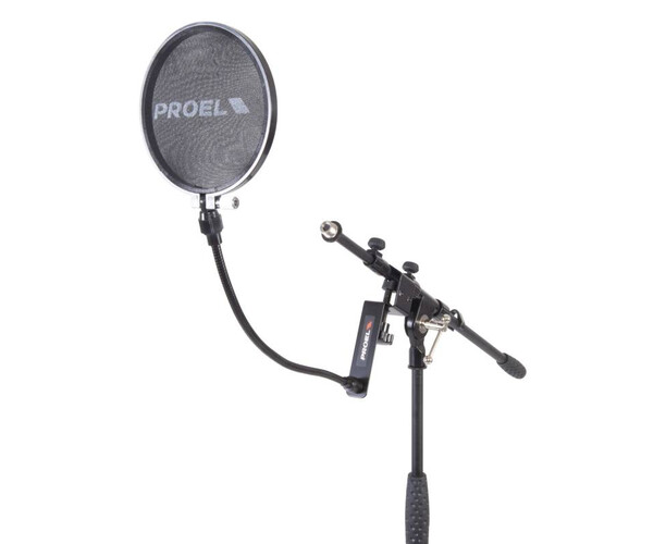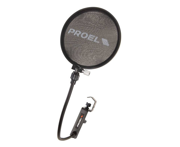 PROEL APOP50 — профессиональный двухслойный поп-фильтр для записи вокала и речи, который уменьшает резкие согласные и шипящие звуки. Нейлоновая сетка эффективно рассеивает воздушные потоки и помогает получить чистое звучание. Гибкая гусиная шея обеспечивает удобное позиционирование, а универсальное винтовое крепление подходит для большинства прямых микрофонных стоек. Прочный корпус и черный цвет придают аккуратный внешний вид. APOP50 — надёжное решение для студий и радиостанций, повышающее качество записи.