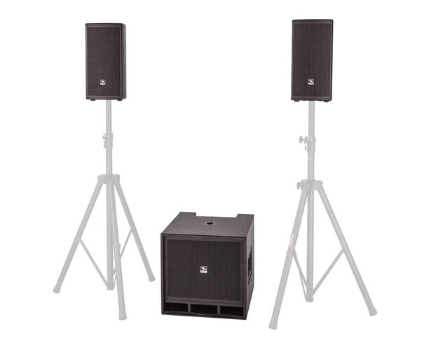 для живых выступлений и мобильных инсталляций. Система включает два сателлита с 8-дюймовыми НЧ-динамиками и 1-дюймовыми компрессионными ВЧ-драйверами,