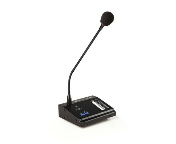 Консоль оснащена 8 кнопками выбора зон, кнопкой ALL для общего вещания и кнопкой TALK для активации микрофона.