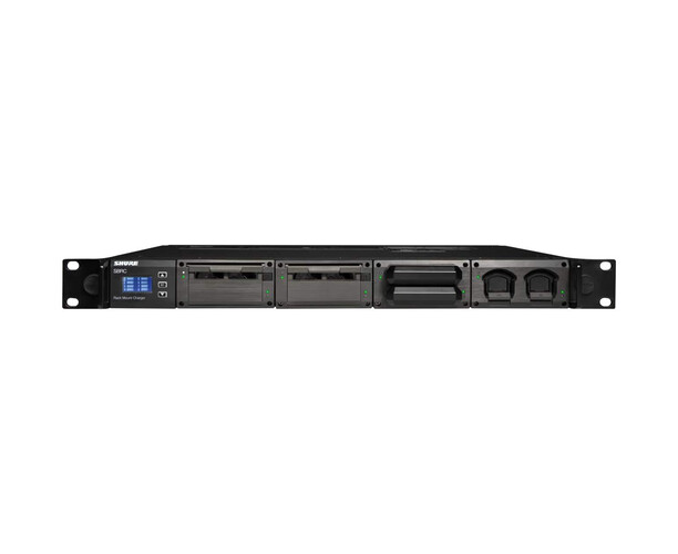 Shure SBRC-E — рэковое зарядное устройство для литий-ионных аккумуляторов Shure, рассчитанное на одновременную зарядку и хранение до 8 батарей в формате 1U. Совместимо с моделями SB900C, AXT910, AXT920, а также SB910, SB920A, SB910M.