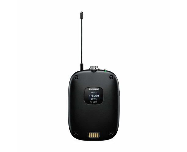SHURE SLXD1-H56 — компактный поясной передатчик для подключения петличных и головных микрофонов Shure, совместимый с цифровыми системами SLX-D.