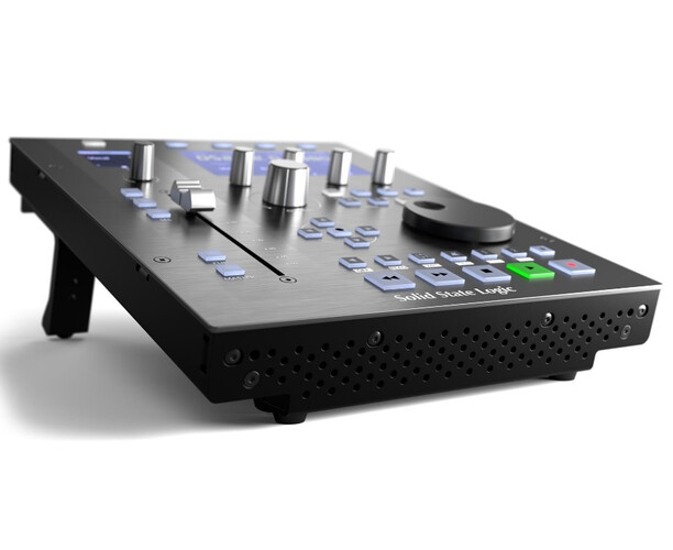 Удобное колесо прокрутки облегчает навигацию по проекту и управление воспроизведением и записью. Через интеграцию с SSL Meter Plug-in на дисплеях можно выводить ключевые метрики: RMS и True Peak уровни, спектральный анализатор RTA, индикаторы VU/PPM и фазовый коррелятор. Металлический корпус, плавный ход фейдера и продуманная компоновка делают работу точной и комфортной.