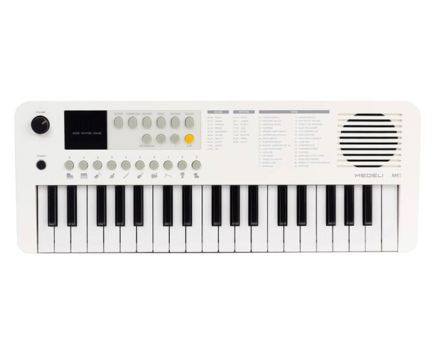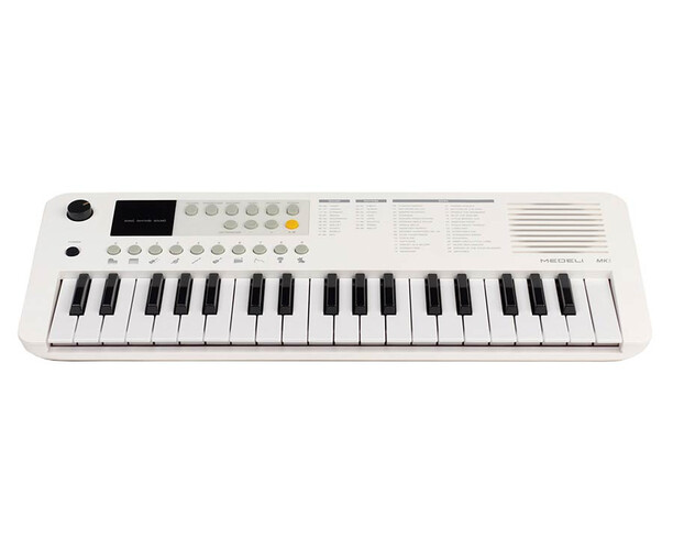 Medeli MK1 – это портативный цифровой синтезатор, ориентированный на начинающих. Модель идеально подойдет для детей в качестве знакомства с клавишными инструментами, предлагая компактные габариты, простое и удобное управление, а также разнообразие встроенных звуков. Благодаря небольшому корпусу и скромному функционалу устройство весит меньше килограмма, за счет чего его удобно брать с собой в поездки и путешествия. Синтезатор оборудован уменьшенной невзвешенной клавиатурой с 37 клавишами без чувствительности к силе нажатия. Тон-генератор обеспечивает полифонию 32 голоса, а в памяти устройства есть 100 предустановленных тембров, разбитых на группы, среди которых есть пианино, органы, медные и деревянные духовые, гитары, синтезаторы, перкуссионные и этнические инструменты, а также различные спецэффекты. Для увлекательных занятий и развития навыков есть 100 стилей автоаккомпанемента в разных жанрах музыки, под которые можно учиться импровизировать и совершенствовать чувство ритма. Также есть 50 встроенных классических композиций. Среди полезных функций также есть метроном с диапазоном темпа 30 – 280 ударов в минуту, а также транспортирование, смена октав и настройка высоты тона. Для управления на лицевой панели есть несколько кнопок и ЖК-дисплей, отображающий числовые значения. Встроенная акустическая система представлена 1 динамиком размером 8 см, на который приходится мощность 2 Вт. Выход для наушников на разъеме 1/8'' Jack TRS позволяет комфортно заниматься в любое время суток, не мешая окружающим. Питание синтезатора может осуществляться как от 4 батареек типа АА, так и по USB-интерфейсу, представленному портом USB-С. Для экономии энергоресурсов есть режим автоматического выключения. USB-кабель поставляется в комплекте. ТОО "Самат шоу техник" является официальным дистрибьютором Medeli в Казахстане.