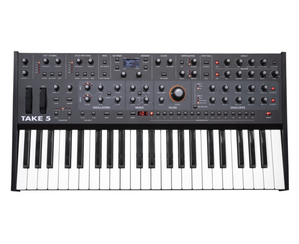 Take 5 сочетает классические элементы Prophet-5 с современными функциями. Панель управления организована для быстрого и удобного контроля всех параметров, а встроенные эффекты добавляют глубину и выразительность звука.
