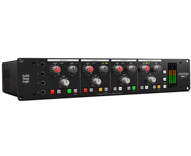 Solid State Logic PURE DRIVE QUAD — это четырёхканальный микрофонный предусилитель с фирменной технологией PureDrive™, созданной на основе классических разработок SSL. Каждый канал может работать в трёх режимах: Clean для максимально прозрачного звука, Classic Drive с мягким насыщением и Asymmetric Drive с более выразительной окраской.